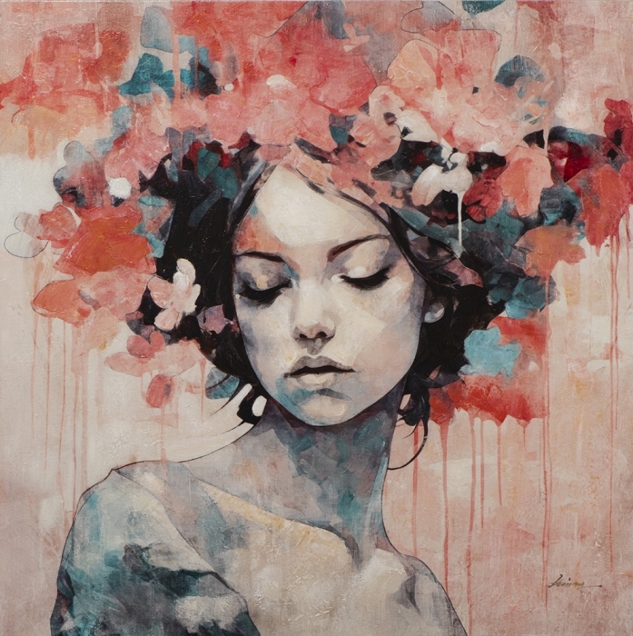 Schilderij vrouw met bloemen 100x100 ilxe2898