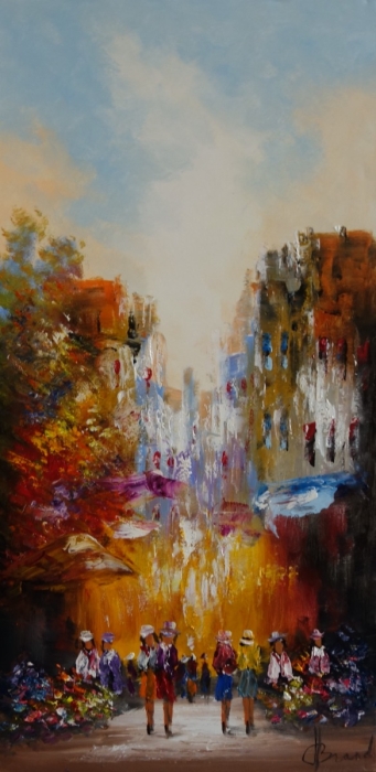 Henry Brand is vooral bekend om zijn stadsgezichten. Dit zijn mooie, handgeschilderde olieverfschilderijen op linnen canvas, opgespannen op een spieraam. De zijkanten zijn mee geschilderd waardoor een lijst niet (meer) nodig is! De schilderijen zijn voorzien van een beschermlaag en ze worden geleverd met een ophangsysteem waardoor je ze direct op kunt hangen. Van dit schilderij hebben we maar één exemplaar.