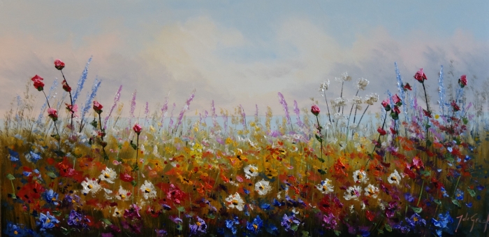 Schilderij bloemenveld 70x140 jg6337