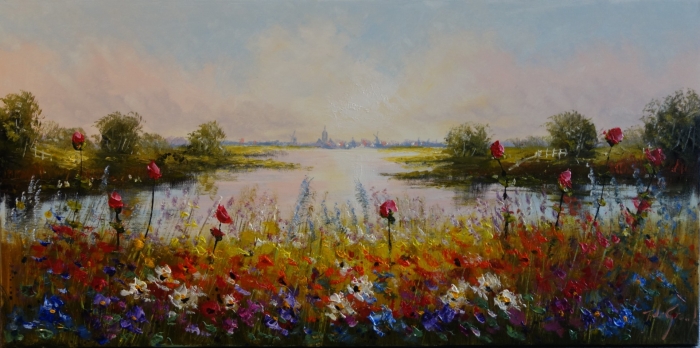In het begin van zijn carrière schilderde Jochem de Graaf voornamelijk mensen, nu zijn de bloemen ook niet meer weg te denken uit zijn oeuvre. Hij schildert met reliëf waardoor hij diepte creëert in zijn kunstwerken. Zijn handgeschilderde olieverfschilderijen op linnen canvas zijn opgespannen op een spieraam. De zijkanten zijn mee geschilderd waardoor een lijst niet (meer) nodig is! De schilderijen zijn voorzien van een beschermlaag en ze worden geleverd met een ophangsysteem waardoor je ze direct op kunt hangen. Van dit schilderij hebben we maar één exemplaar. Onze schilderijen worden vaak binnen 48 uur thuisbezorgd. Wij hanteren een niet-goed-geld-terug-garantie. Bestel online en betaal veilig met iDEAL, of kom langs in onze winkel. De koffie staat al klaar!