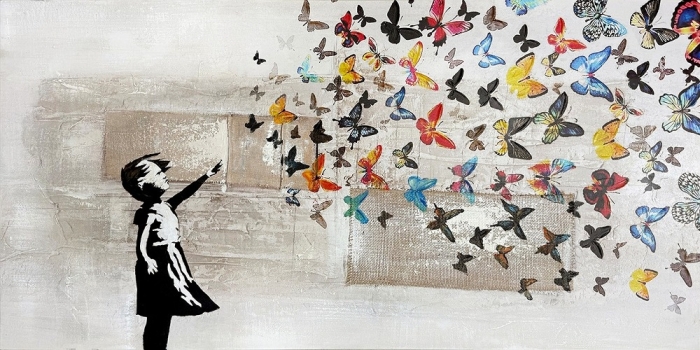 Handgeschilderd olieverf schilderij op linnen. Het is opgespannen op een dik spieraam waarvan de zijkanten zijn meegeschilderd. Het schilderij is voorzien van stoffen elementen en een vernis beschermlaag. Wordt geleverd met ophangsysteem, zo is het direct op te hangen. Onze schilderijen worden vaak binnen 48 uur thuisbezorgd. Wij hanteren een niet-goed-geld-terug-garantie. Bestel online en betaal veilig met iDEAL, of kom langs in onze winkel in Geldrop. De koffie staat al klaar!