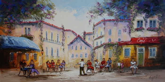 Caspar van Houten gebruikt simpele vormen met duidelijke contouren in zijn schilderijen. Ze zijn vaak helder, maar felgekleurd. Deze handgeschilderde olieverfschilderijen op linnen canvas zijn opgespannen op een spieraam. De zijkanten zijn mee geschilderd waardoor een lijst niet (meer) nodig is! De schilderijen zijn voorzien van een beschermlaag en ze worden geleverd met een ophangsysteem waardoor je ze direct op kunt hangen. Van dit schilderij hebben we maar één exemplaar.