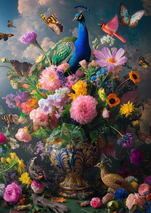 Powerfull peacock II op glas 70x100 gth451