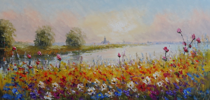 In het begin van zijn carrière schilderde Jochem de Graaf voornamelijk mensen, nu zijn de bloemen ook niet meer weg te denken uit zijn oeuvre. Hij schildert met reliëf waardoor hij diepte creëert in zijn kunstwerken. Zijn handgeschilderde olieverfschilderijen op linnen canvas zijn opgespannen op een spieraam. De zijkanten zijn mee geschilderd waardoor een lijst niet (meer) nodig is! De schilderijen zijn voorzien van een beschermlaag en ze worden geleverd met een ophangsysteem waardoor je ze direct op kunt hangen. Van dit schilderij hebben we maar één exemplaar.