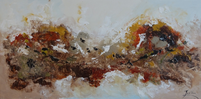 Een schilderij van Twan van de Ven herken je aan de organische vormen met een vloeiende streek. Hij experimenteert met kleuren en composities waardoor ieder schilderij een uniek werk is. Zijn schilderijen zijn handgeschilderd met olieverf op linnen canvas, opgespannen op een spieraam. De zijkanten zijn mee geschilderd waardoor een lijst niet (meer)nodig is! De schilderijen zijn voorzien van een beschermlaag en ze worden geleverd met een ophangsysteem waardoor je ze direct op kunt hangen. Van dit schilderij hebben we maar één exemplaar.